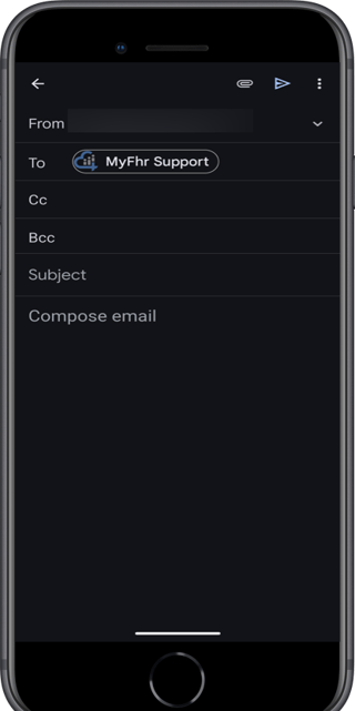 An new email will open on your device allowing you to send any issues or questions you have to myFHR Support.