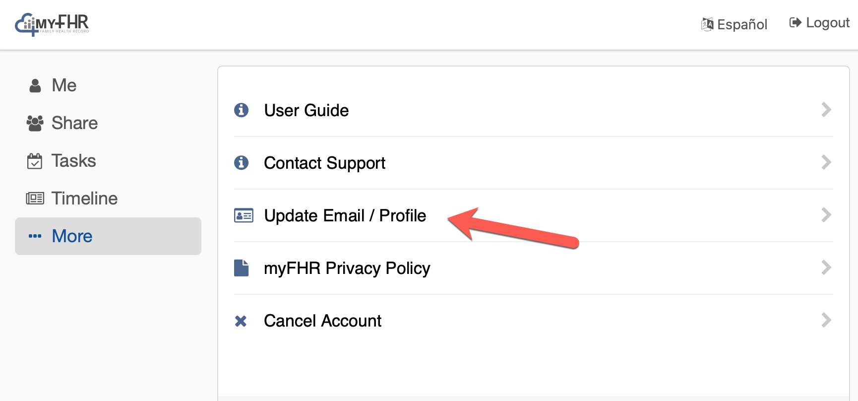 - Open the email sent to your updated email address, and click the link to finish changing your email address. You will then be taken back to the myFHR Profile screen.